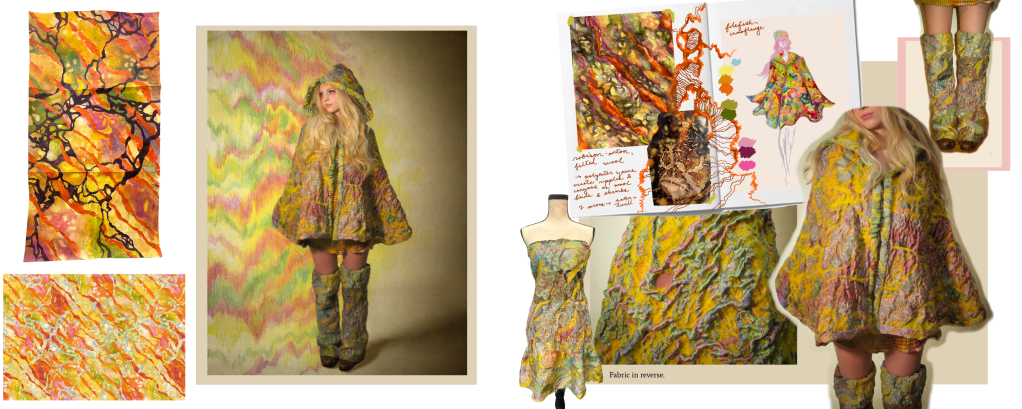 Fabric designed in Pointcarre, woven on the Jacquard loom, hand felted.