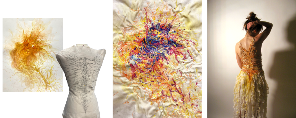 Then, I designed a spine structure that is completely embroidered using water-dissolving backing, holding up the tentacles of the dress.