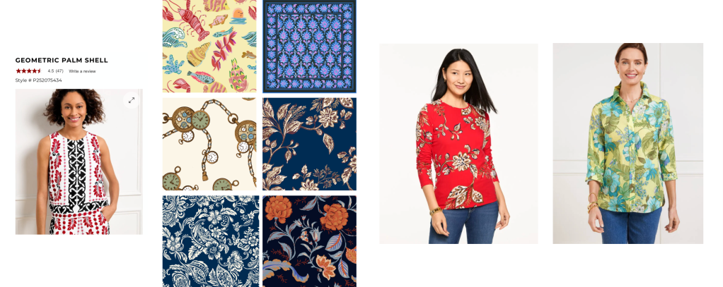 These are a few pages from the full catalog, which feature women employees in the Talbots NYC office modeling our original prints and designs.