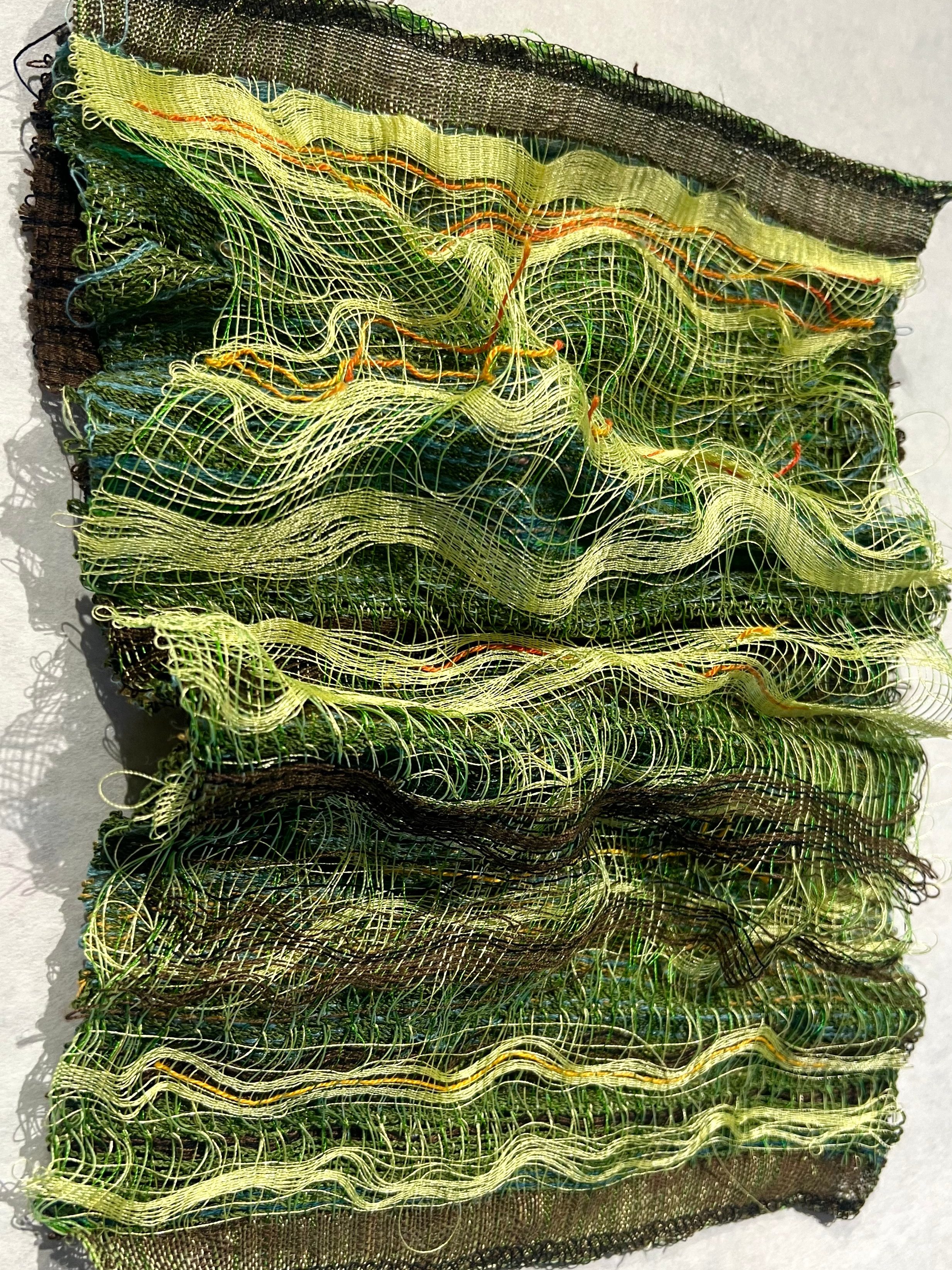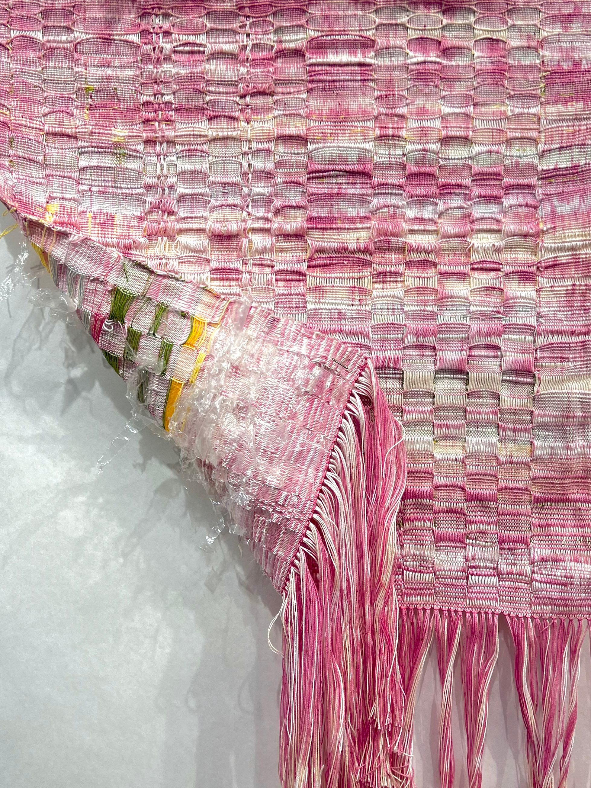 flaky reptile skin. naturally dyed with lac and pomegranate, woven with plastic.